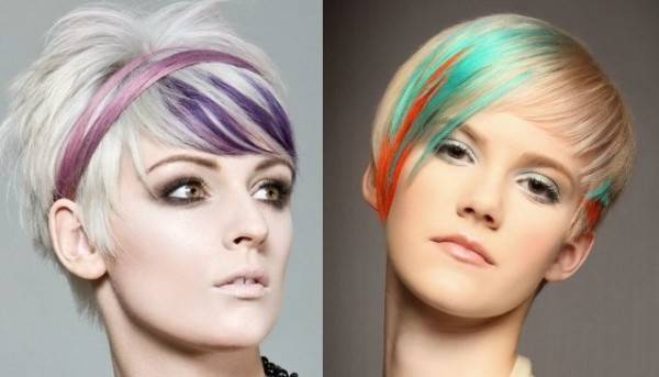 Цветные акценты на короткой стрижке