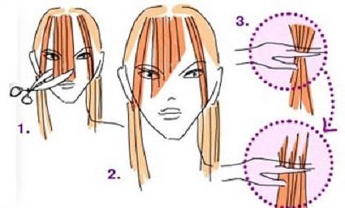 Если вы все сделаете правильно, вам удастся за несколько секунд сформировать правильный и красивый срез. Если в процессе стрижки рука дрогнет, вы можете испортить челку. Восстановить внешний вид можно будет при помощи филировки. Такой способ поможет вам получить длинную челку. Технология простая, но если у вас короткие пряди, работать с ними будет неудобно.
