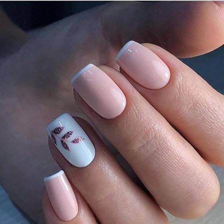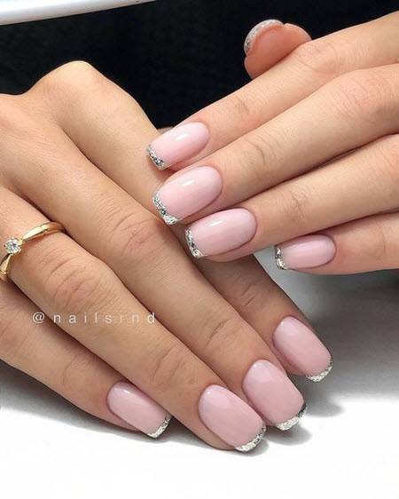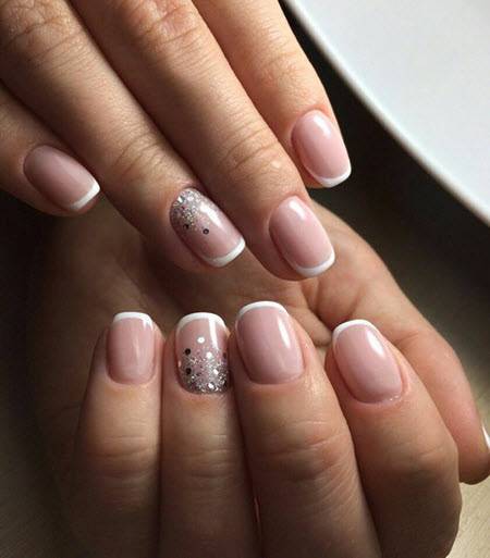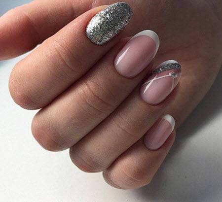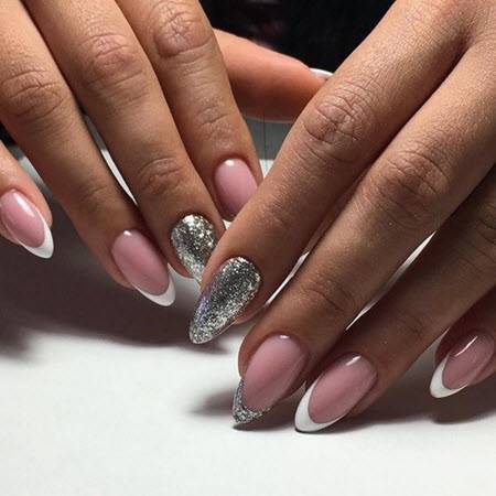 Часто блестками украшают кончик ногтевой пластины или базальную область, благодаря этому получается акцент в маникюре. В основном это делается только на нескольких ногтях. Этот вариант отлично подойдет для любого случая, потому что он не слишком яркий и выглядит нежно. Также многие мастера по маникюру используют блестки только в качестве акцента, а именно украшают рисунки. То есть изначально французский маникюр сочетается с монограммами, геометрическим рисунком, кружевными вставками, когда все готово, дизайн можно подчеркнуть блестками. В результате получается роскошный объемный маникюр с мерцающими деталями. Он подходит для любого случая, поэтому в 2020-2021 году он особенно актуален.