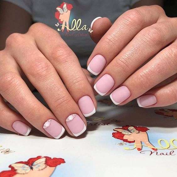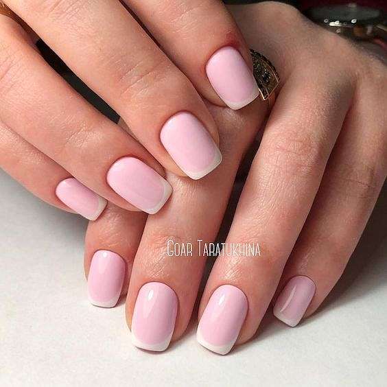 Выполняем классический френч-маникюр, придаем ногтям розовый цвет.