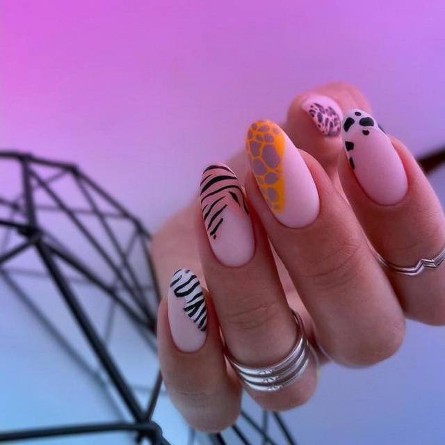 Подобный рисунок отвлечет внимание от необычной формы ногтя, сделав маникюр совершенным