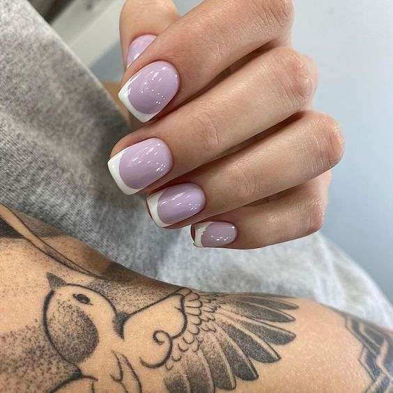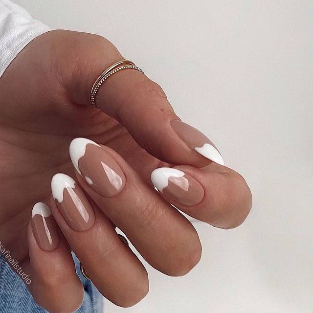 Классика жанра. Косой белый френч 2023 на коротких ногтях – отличный способ разнообразить привычную картину новыми линиями. Чем короче ногти, тем меньше декора им потребуется. А вот на длинных ногтях можно экспериментировать, например, добавить тонкую линию, вторящую белому краю, отступив от него 1-2 миллиметра.