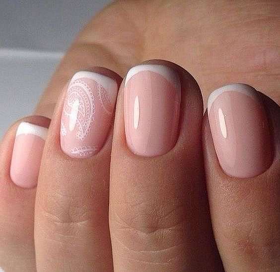 Можно воспользоваться следующей маникюра: сначала делается стандартный френч, после чего он покрывается кружевным рисунком. Такой вид маникюра будет особенно уместен на свадьбе, он выглядит естественно и красиво.