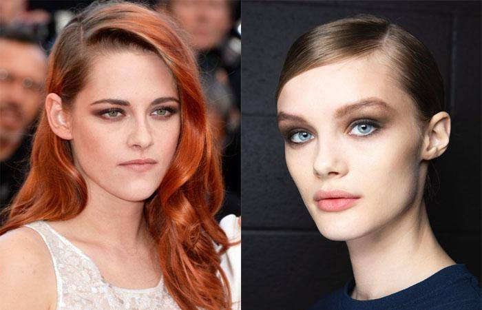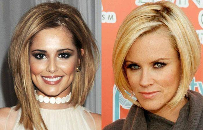 Например, Келли Осборн обладает ярко выраженной грушевидной формой лица, на фото можно заметить как лицо визуально меняется в зависимости от прически и пробора. Так если открыть лицо, то нижняя часть будет смотреться тяжелой, а если распустить волосы и сделать косой пробор, то лицо становиться более “аккуратным” и правильным.