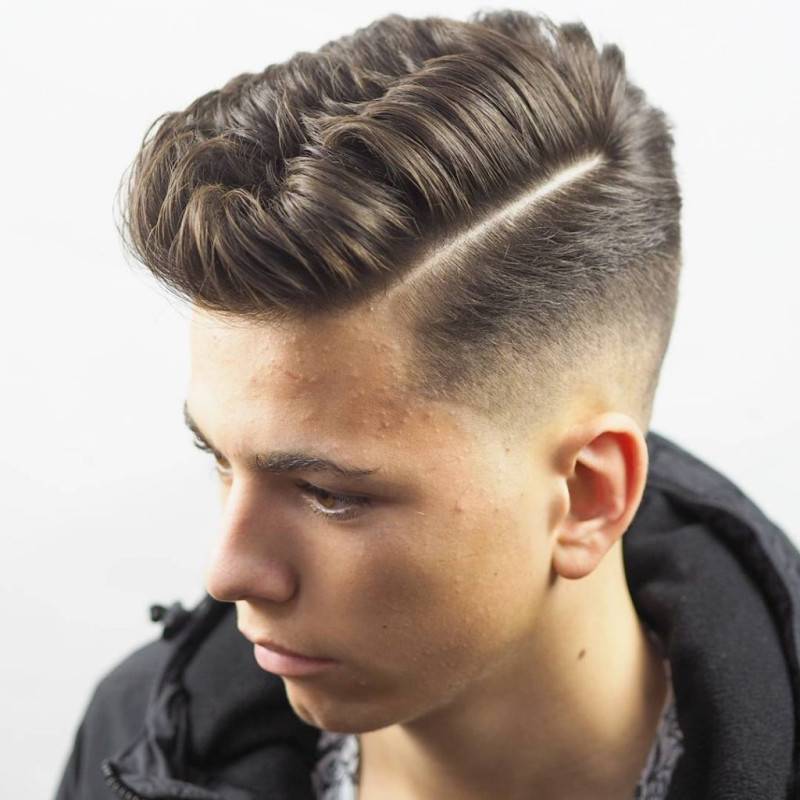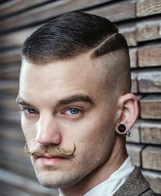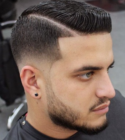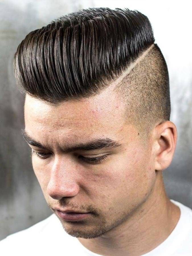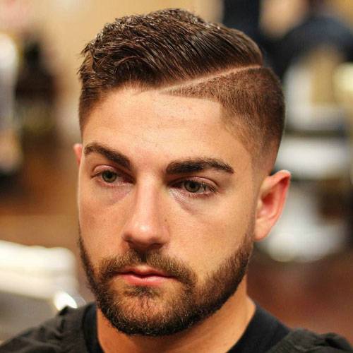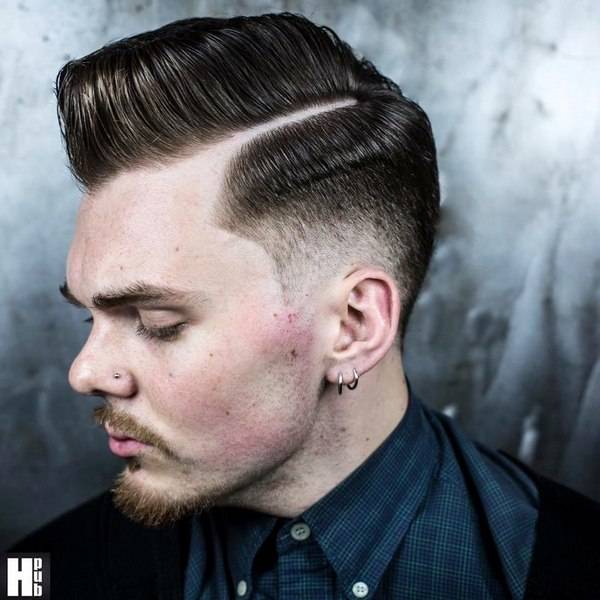 Боковой пробор на короткие волосы делают активным людям или тем, кто не любит ухаживать за волосами. Он идеально смотрится на выбритых висках. Парни могут выбирать такие варианты с выбритым пробором: