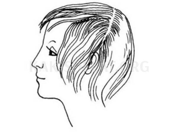 Диагональный или косой. Линию разделения шевелюры проводят по диагонали.
