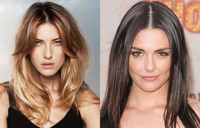 Как правило, разделенные четко посередине волосы идут девушкам с овальными лицами. При этом любую асимметрию, например, неровный нос, или индивидуальную особенность, как «тяжелую челюсть», прямой пробор только подчеркнет.