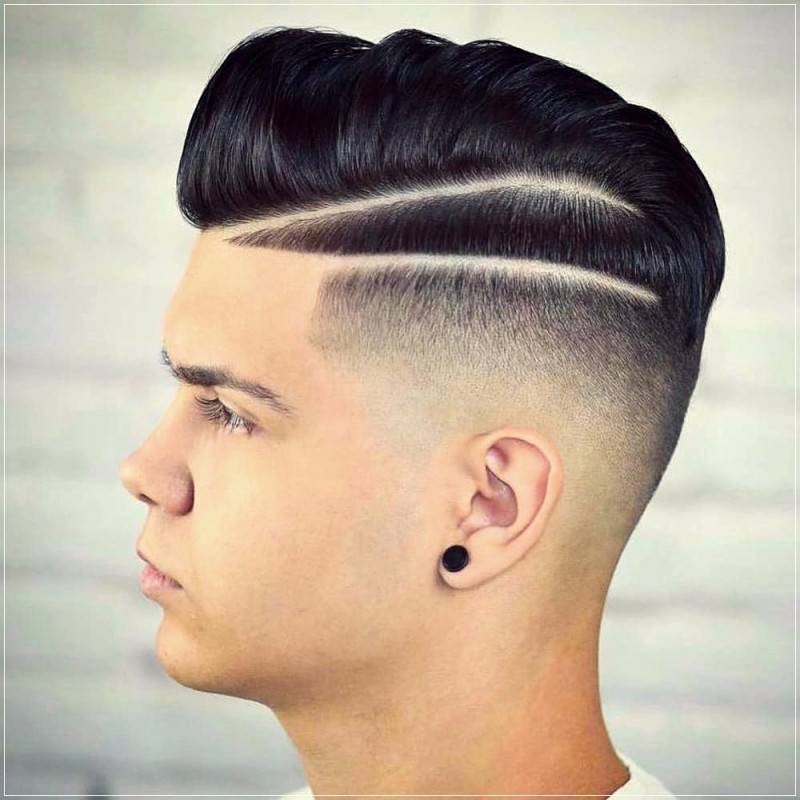 Для тех, кто хочет сохранить актуальную форму мужской стрижки, но сделать ультрамодный акцент и выделиться из толпы, мастера придумали вариант мужской прически с двумя разделительными линиями. Суть такой прически — мастер делает две разделительные линии (с двух сторон). Волосы, как правило, зачесываются назад. Это универсальная мужская прическа — основную массу прядей всегда можно зачесать набок и спрятать вторую линию.