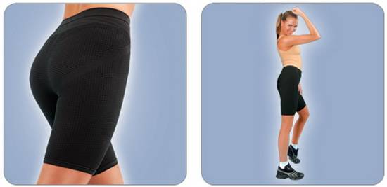 …сжигание жира – по утверждениям производителей в области непосредственного воздействия происходит сжигание жиров. Однако для устранения жировых клеток требуется весьма серьезный процесс их расщепления, утилизации и вывода, что вряд ли сможет обеспечить поверхностное воздействие. Вывод – штаны для похудения не сжигают жировых запасов.