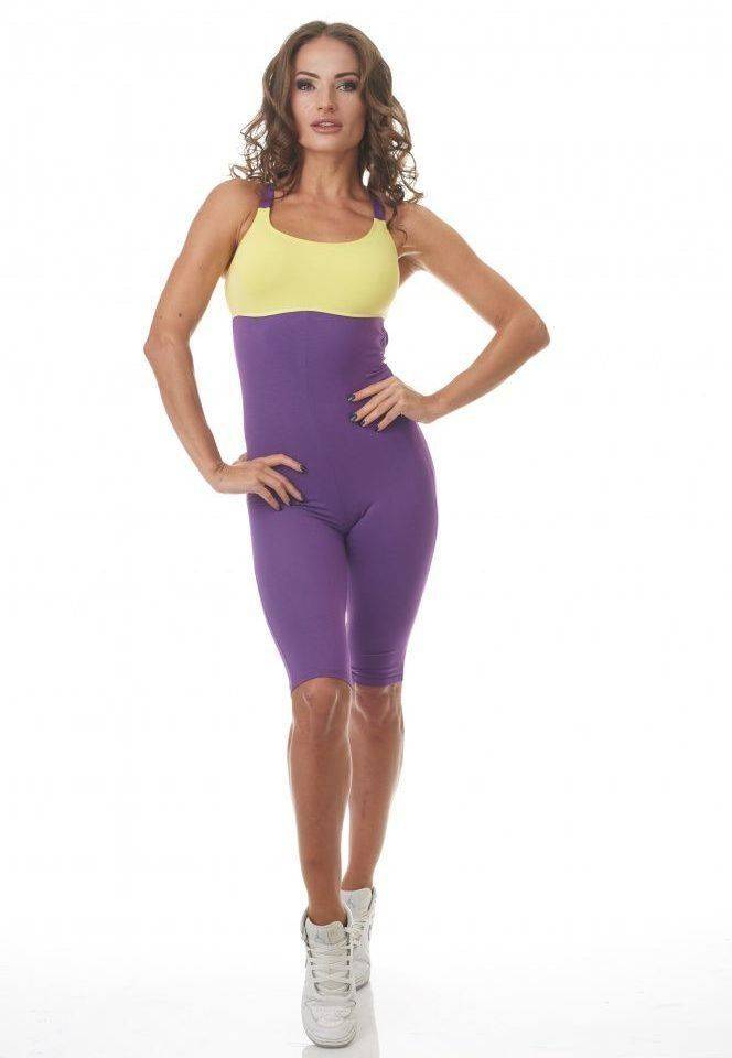 Укороченный комбинезон. Представлен в оригинальном ярком цвете. Подходит для занятия в спортзале и уличных пробежек в теплое время года.