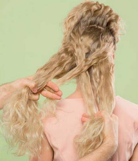 - От общей копны волос отделить такую прядь, чтобы свободно помещалась в ладони.