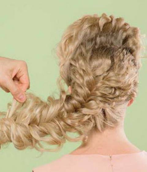 7. Продолжайте плести рыбий хвост до самых кончиков волос.