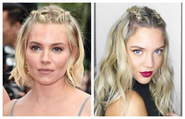 Интересно смотрятся две боковые французские косы плавно переходящие в хвост. Обладательницы удлиненного каре смогут заплести переднюю часть в виде ободка. Оставшиеся волосы можно вытянуть утюжком или наоборот завить, для придания большей фактурности.