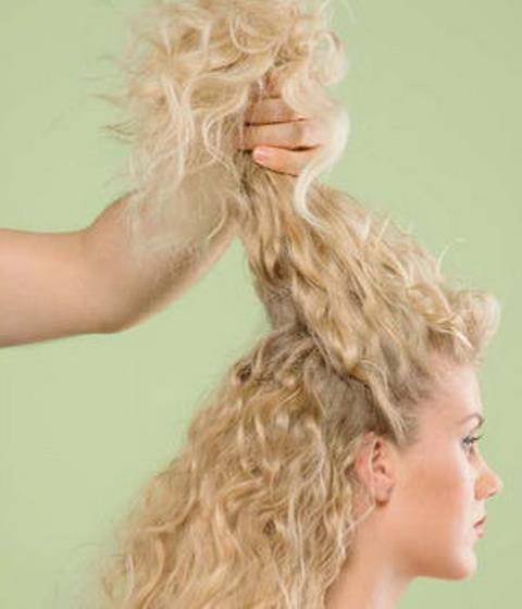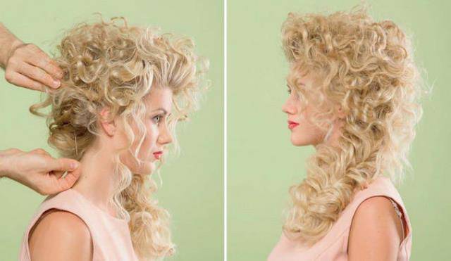9. Верхний ярус опустите и еще раз сильно взбейте. Если локоны получились очень длинными, подколите их шпильками, формируя красивую шапочку.