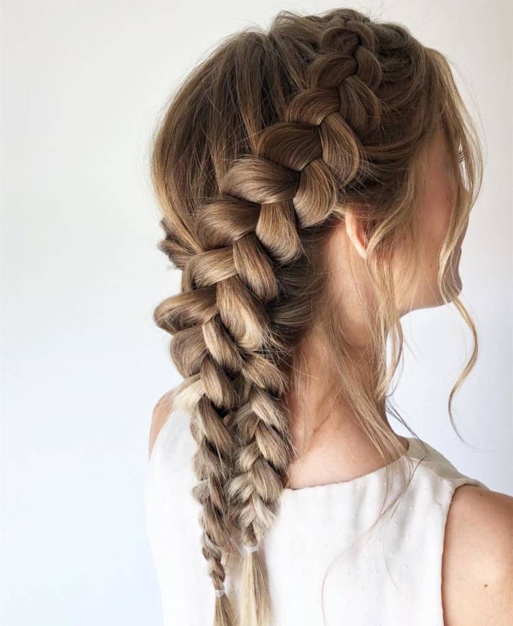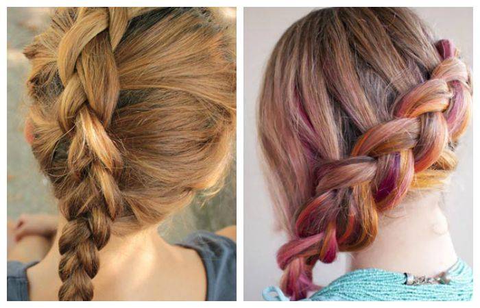 Модная прическа с косой, заплетенной в обратном направлении, фото