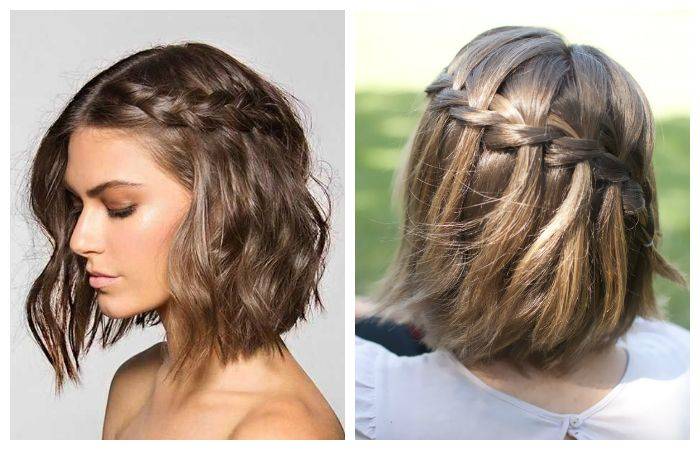 На коротких волосах не составит большого труда заплести косичку – водопад.