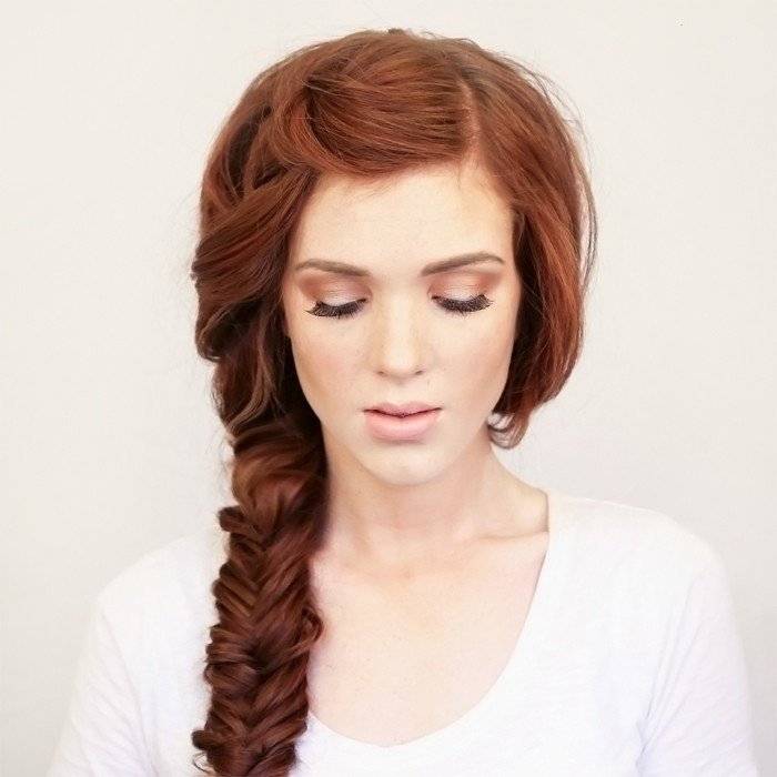 Визуально коса напоминает сказочную героиню русалочку. За что и получила свое название. Техника плетения напоминает французский колосок, но отличие состоит в том, что новая прядь берется не через всю голову, а с края.