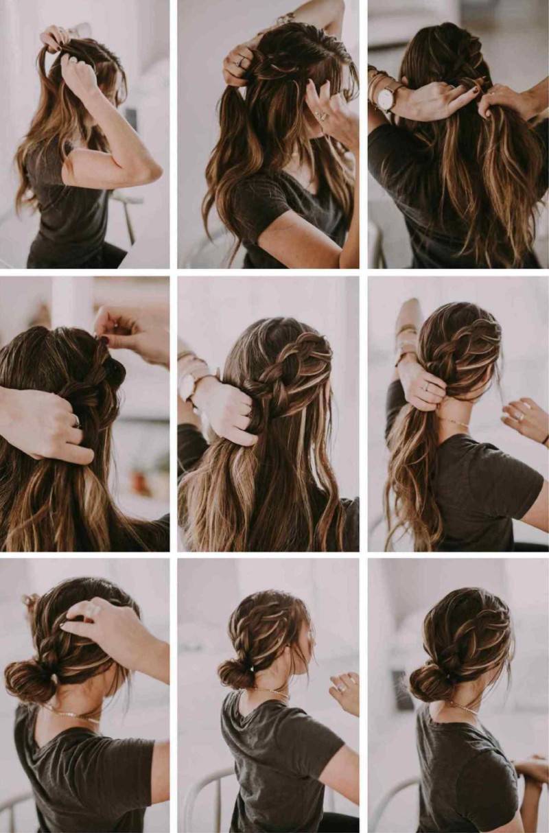 - Уложить левую прядь под расположенную часть посередине, при этом концы волос не должны запутаться между собой.