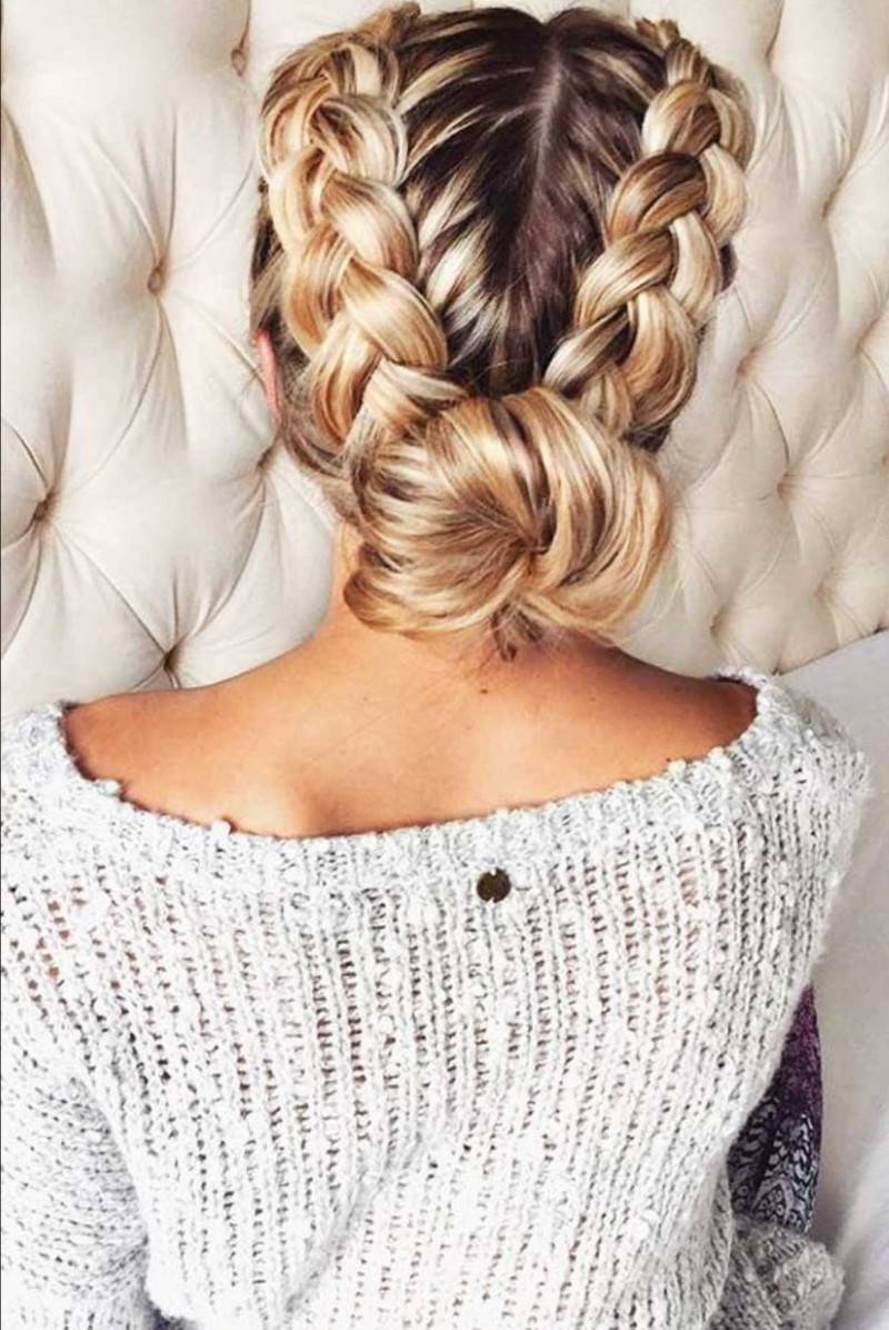 Прически с двумя косами на макушке и распущенными волосами, фото