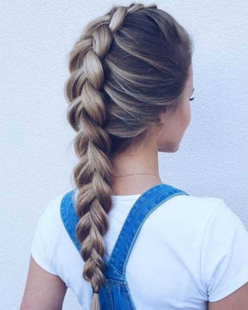 Модная прическа с косой, заплетенной в обратном направлении, фото