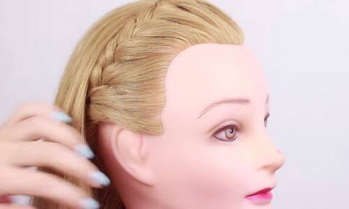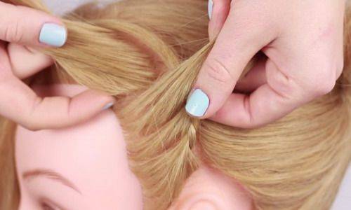 - Перекладывайте пряди как при классическом плетении, на каждом из этапов добавляя к ним волосы с боков.