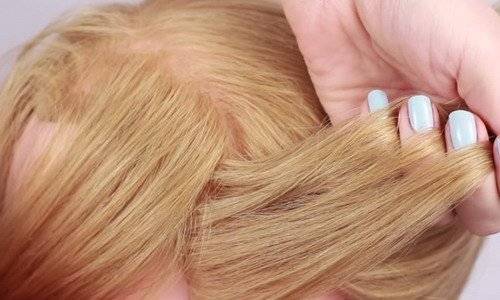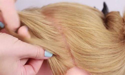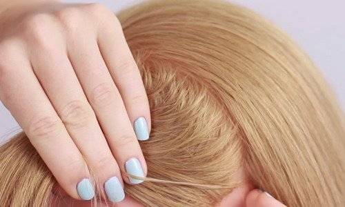 1. Посредине головы берем широкую прядь – от лица до затылка. Остальные волосы лучше заколоть крабиками, чтобы не мешали.