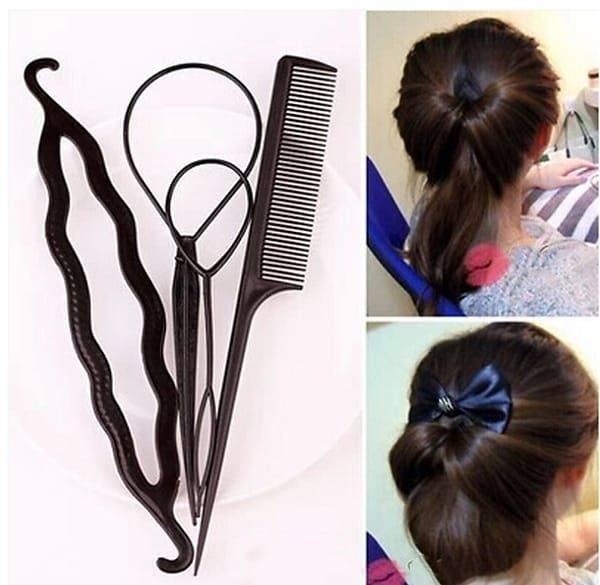 Для тех, кто уже набрался опыта и необходимых навыков – ничего, кроме расчески и собственных рук. Даже маленькие девочки могут заплести косичку с закрытыми глазами, вплести в нее ленту, соорудить калачик или корзиночку и завязать нарядный бант.