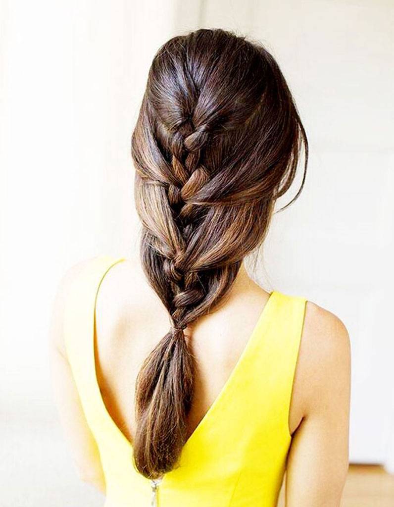 Для длинных волос тоже подойдет любой лаконичный хвост или небрежный пучок. Но особенно хороши длинные волосы для воплощения ежедневных причесок из всевозможных кос и техник их плетения. Коса «Рыбий хвост» просто шикарно выглядит на длинных волосах, а выполняется за считанные минуты. Корзинка из кос – женственный и очень элегантный выбор. Стильно и очень привлекательно смотрятся дерзкие хвосты с вывернутыми косами.