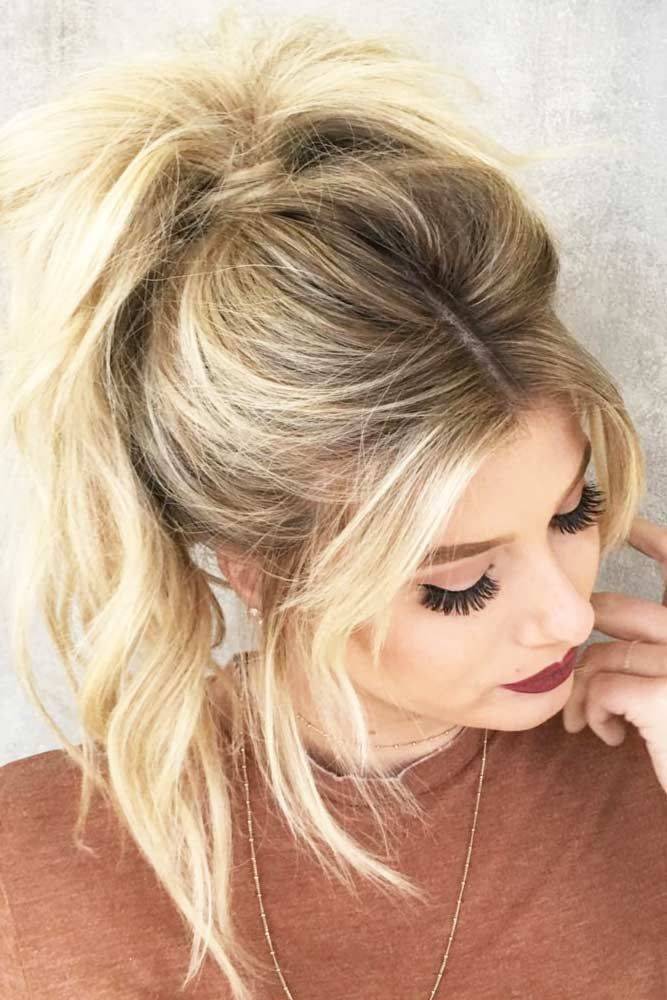 Просто туго завяжите волосы в пучок, а затем осторожно вытяните отдельные пряди из резинки. Это придает прическе больше объема и «хаотический вид»