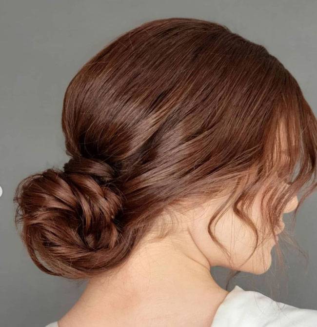 Чтобы сделать классический пучок более интересным, сначала заплетите обычную косу. Затем скрутите его в пучок и прикрепите к голове шпильками. Зафиксируйте лаком для волос, и гламурный пучок готов.