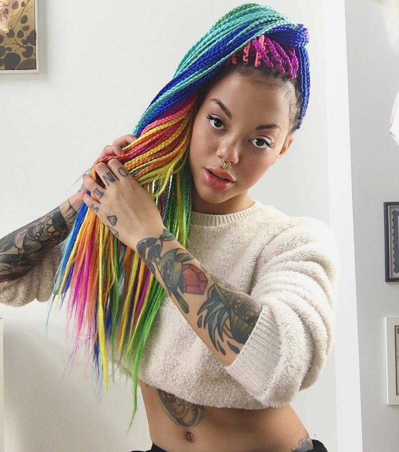 - смешать естественный цвет или создать очень яркий и провокационный образ, ведь его цвет может быть как однотонным, так и разноцветным.