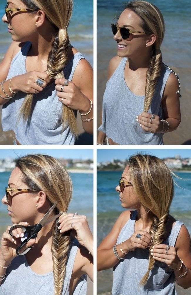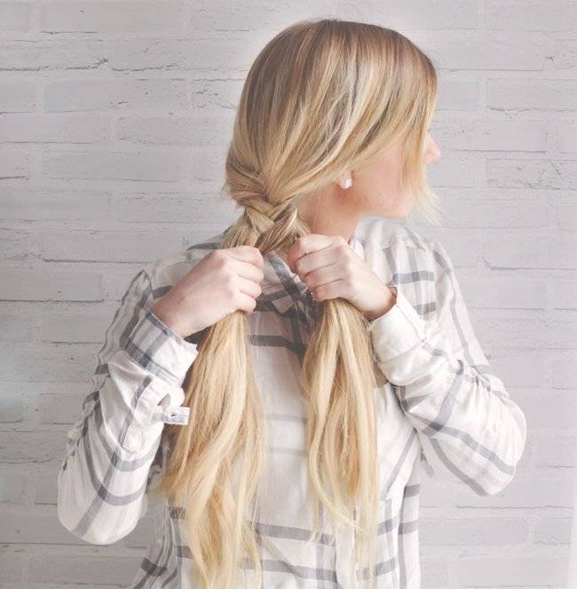 Другой вариант — это перевернутый хвост с косами. Такая прическа не только раскроет лицо, но и добавит изящества. А косички сделают оригинальной любую обычную прическу. Вы плетете вот так: