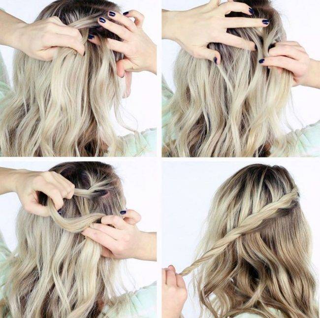 - Разделите волосы на две части. Одну сторону закрутите жгутом против часовой стрелки.