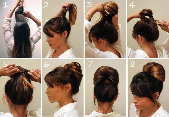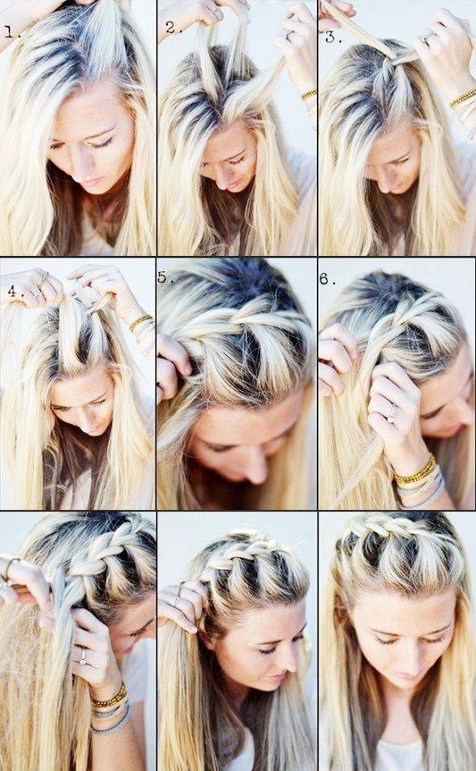 Для начала, заплетают макушку головы, посередине или с одной стороны — и связывают ее с остальными прядями в хвостик (который затем можно превратить в пучок).