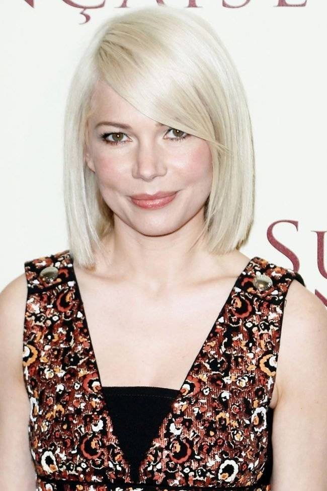 Овальное лицо – идеальный вариант практически для любой стрижки. Подойдет прическа с короткой косой челкой и миниатюрным девушкам. Если черты лица более крупные, такую челку лучше филировать – сделать у нее рваные края. При склонности к полноте, напротив, короткие челки категорически противопоказаны. Для уравновешивания пропорции в таких случаях лучше выбрать стрижки с длиной челкой, скошенной набок.