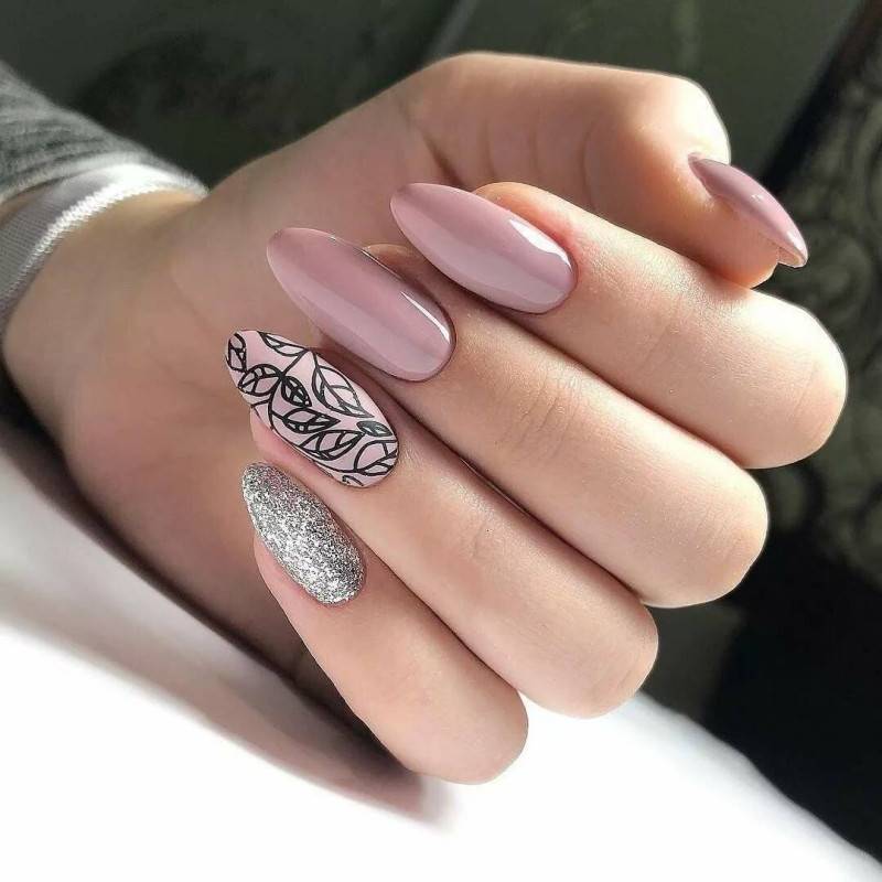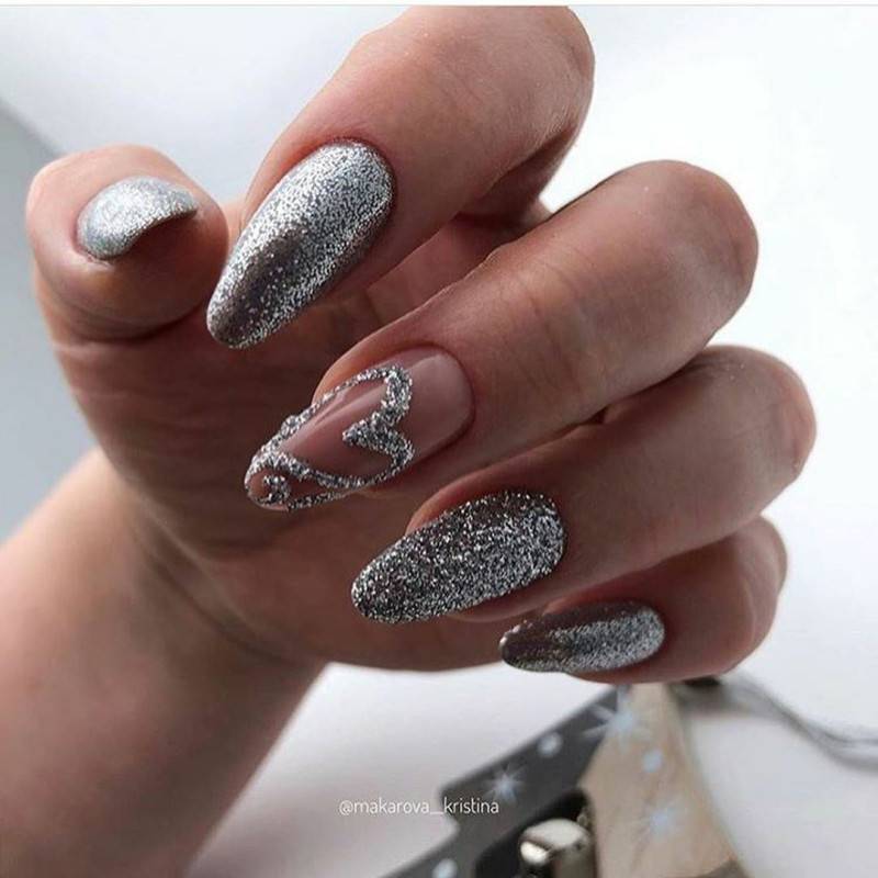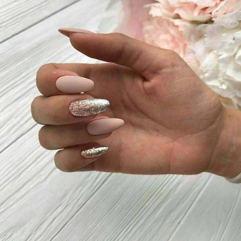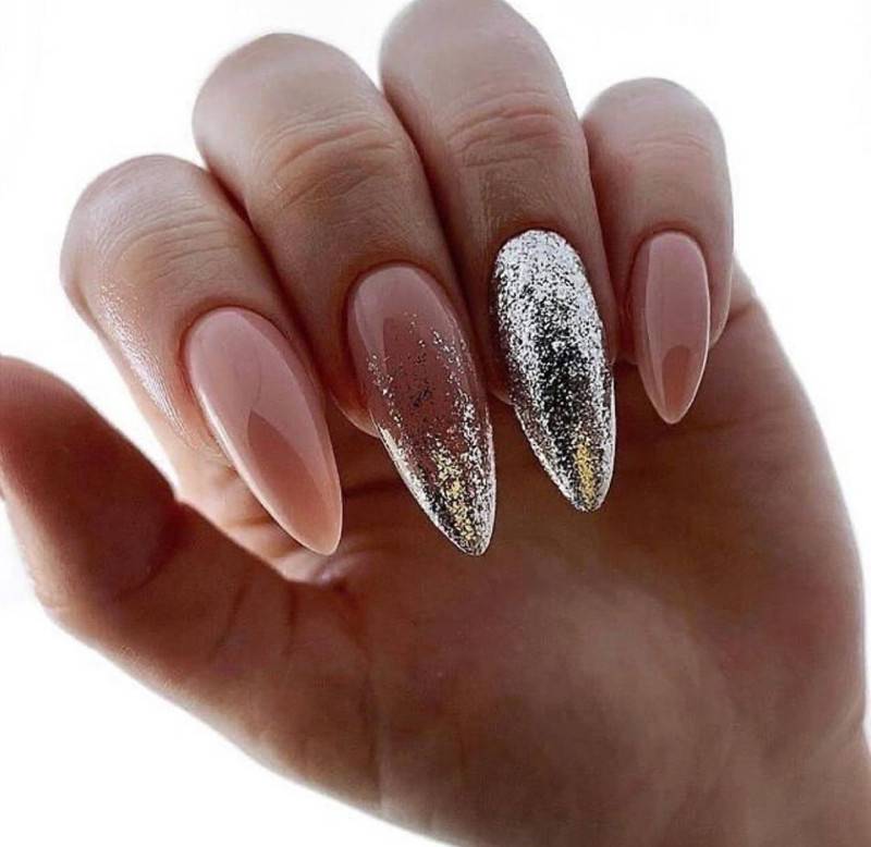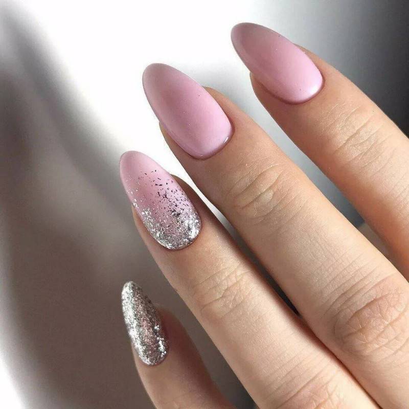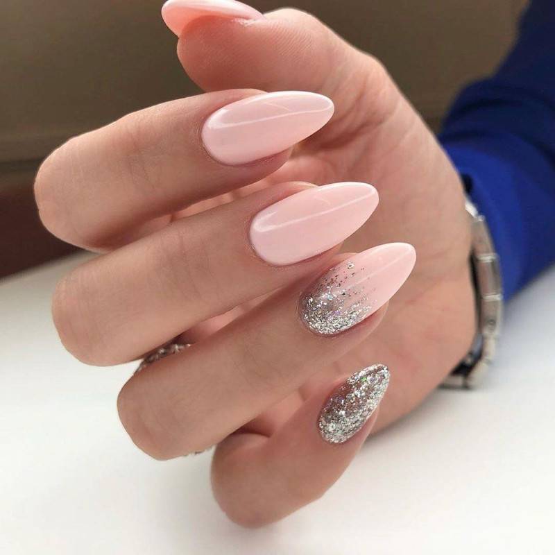 #5 Красивый нежный маникюр с блестками на миндальные ногти