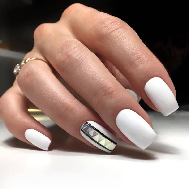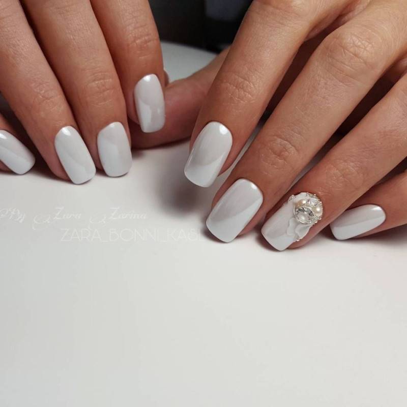 Нежный маникюр с использованием декоративного элемента очень красиво смотрится на любой длине и форме.