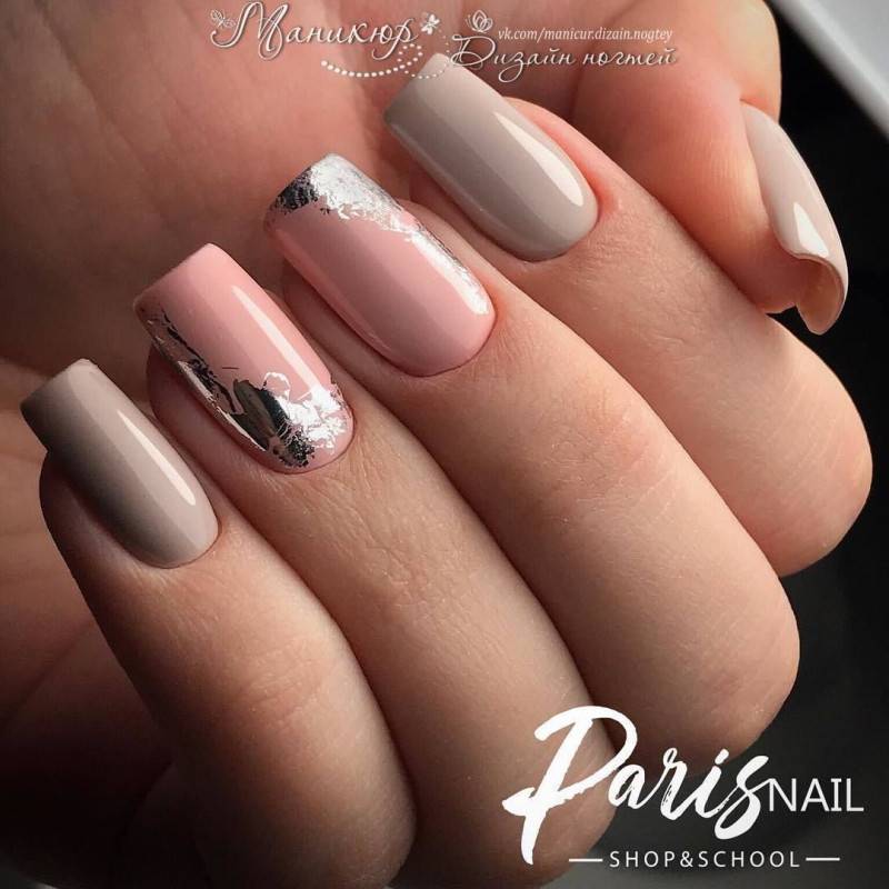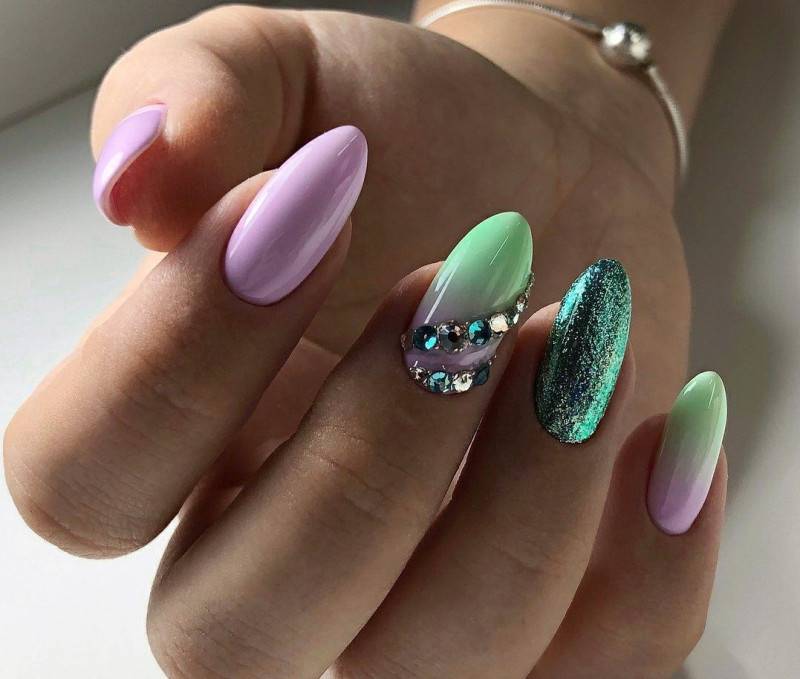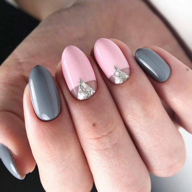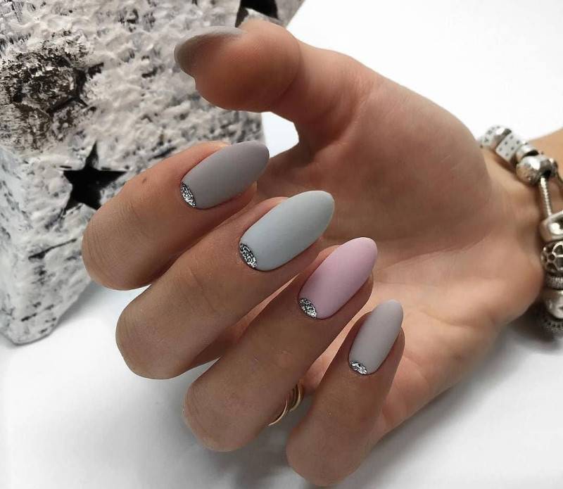 Что касается нежного маникюра на миндальных ногтях, то можно использовать цвета поярче. Например, красиво выглядят нейл-арты в сером, бежевом, бирюзовом, голубом, ярком розовом цветах. Если вы все же хотите получить нежный дизайн ногтей, то выбирайте молочный цвет, полупрозрачные и прозрачные текстуры.