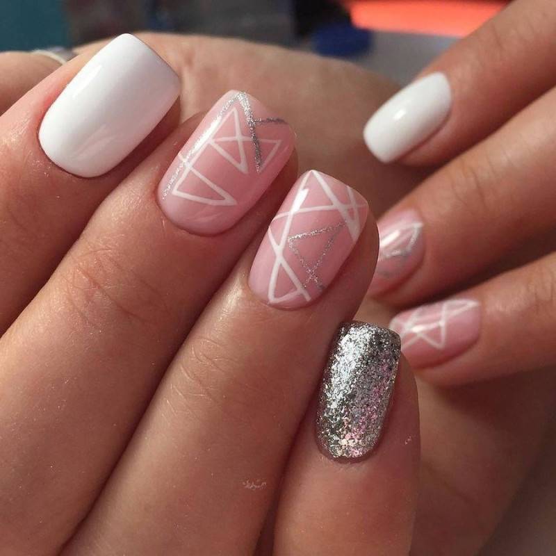 Отличный вариант рисунка и маникюра – нежный розовый с белым.