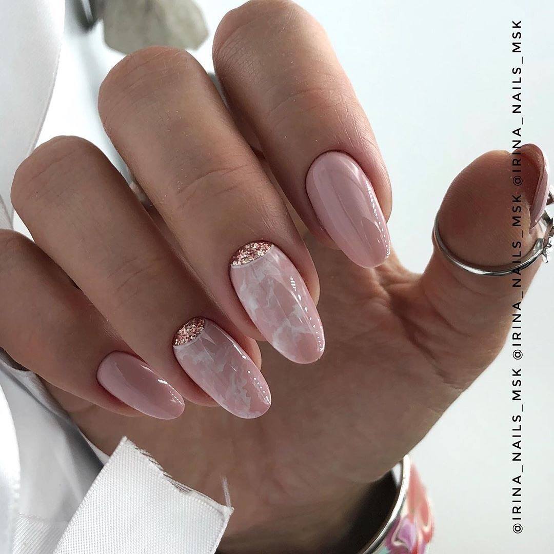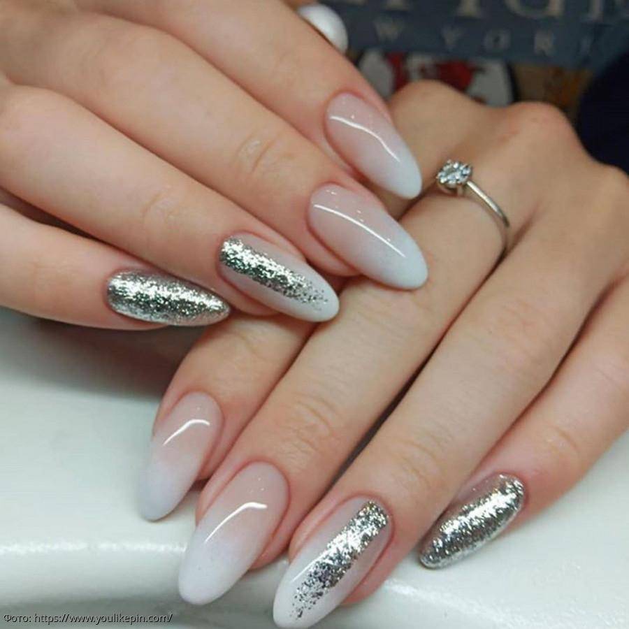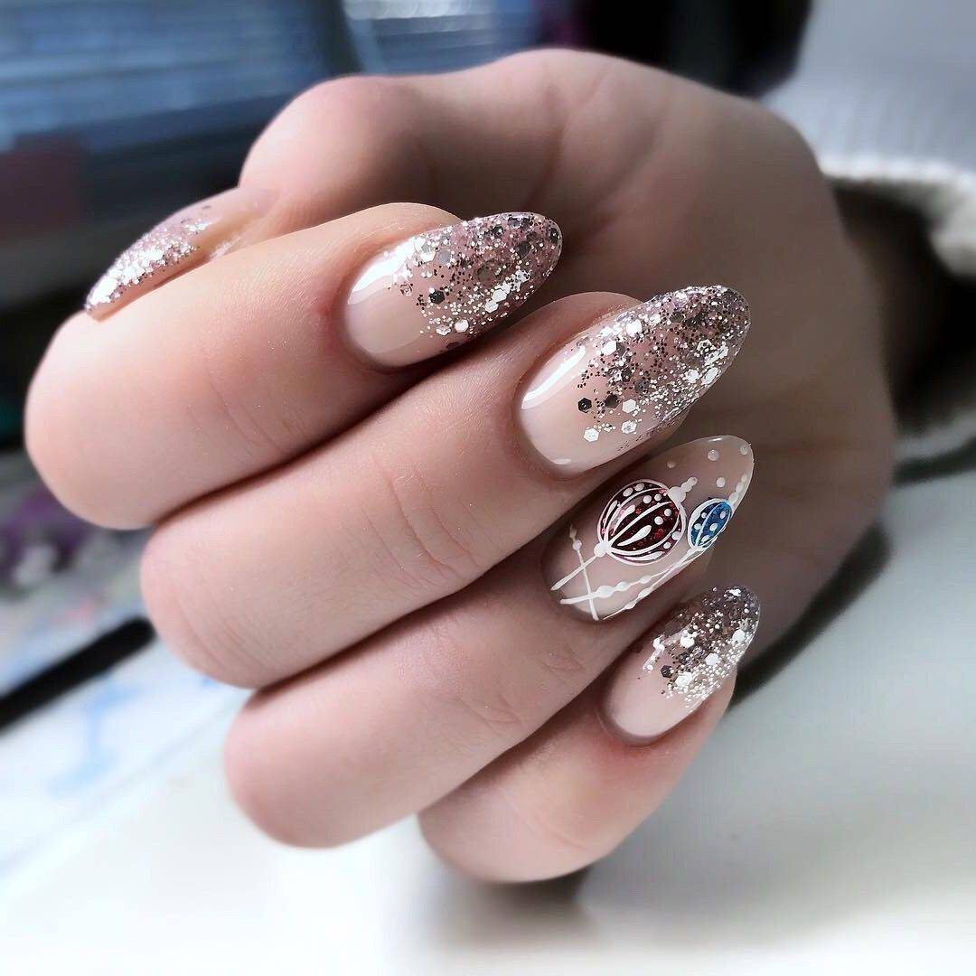 #5 Красивый нежный маникюр с блестками на миндальные ногти