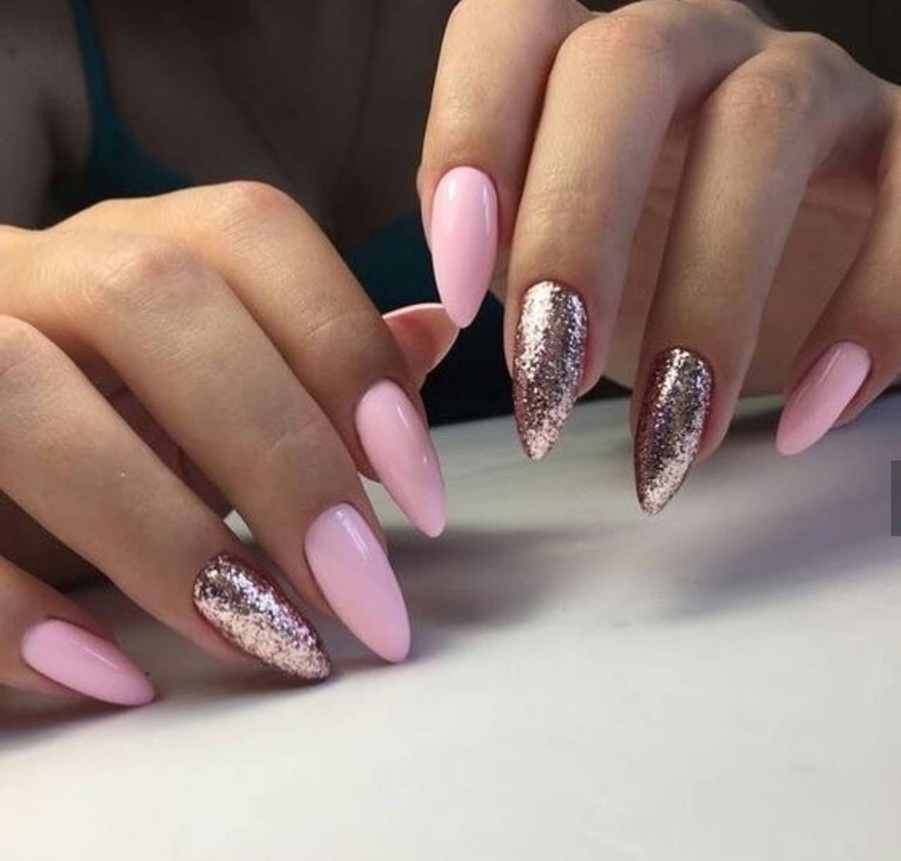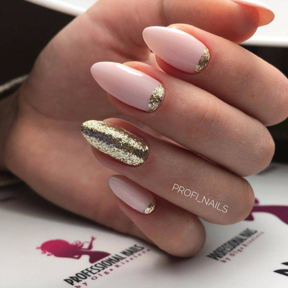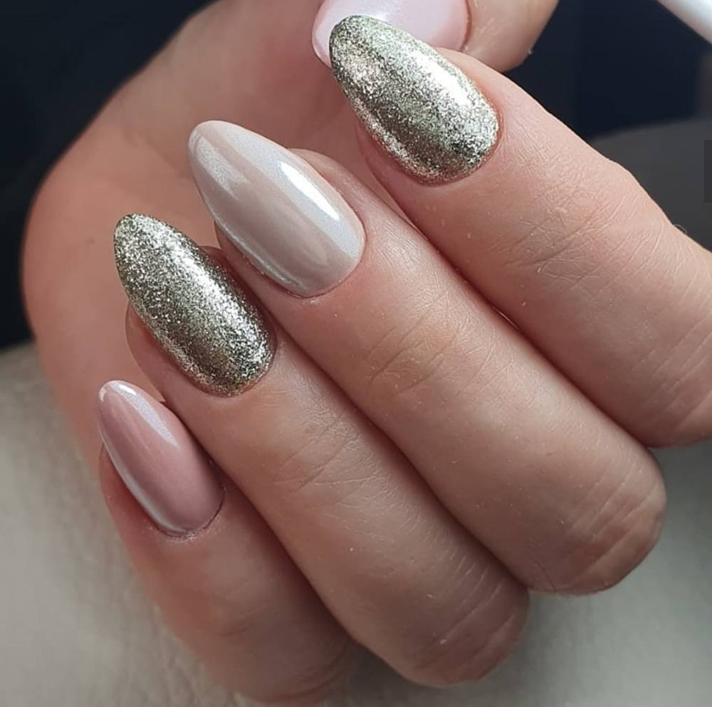 #5 Красивый нежный маникюр с блестками на миндальные ногти