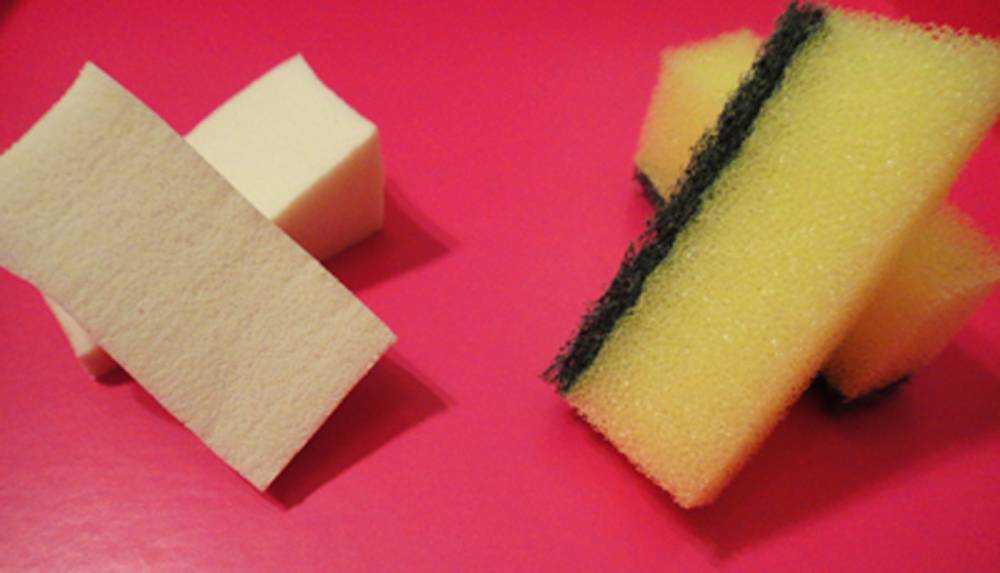 Обычная губка для мойки посуды или мочалка вам также пригодятся. Вместо этих приспособлений можете использовать косметический спонж: