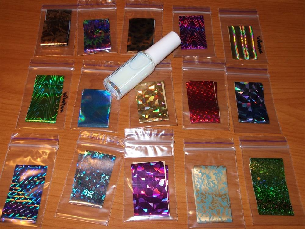 Специальным клеем для ногтей и декоративной фольгой для создания нейл-арта: