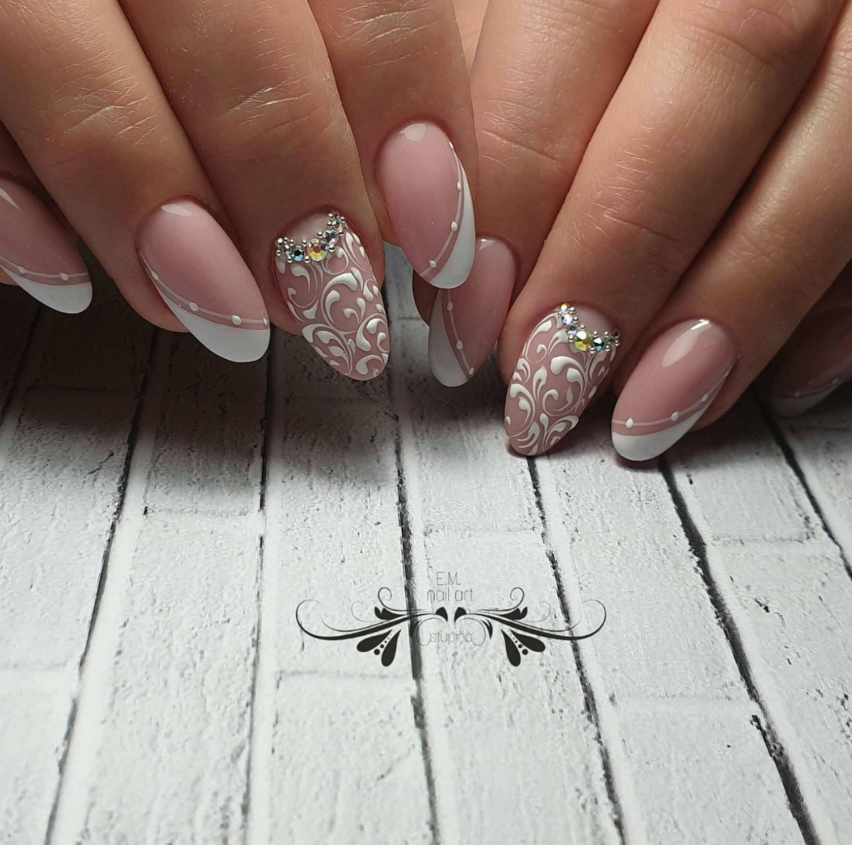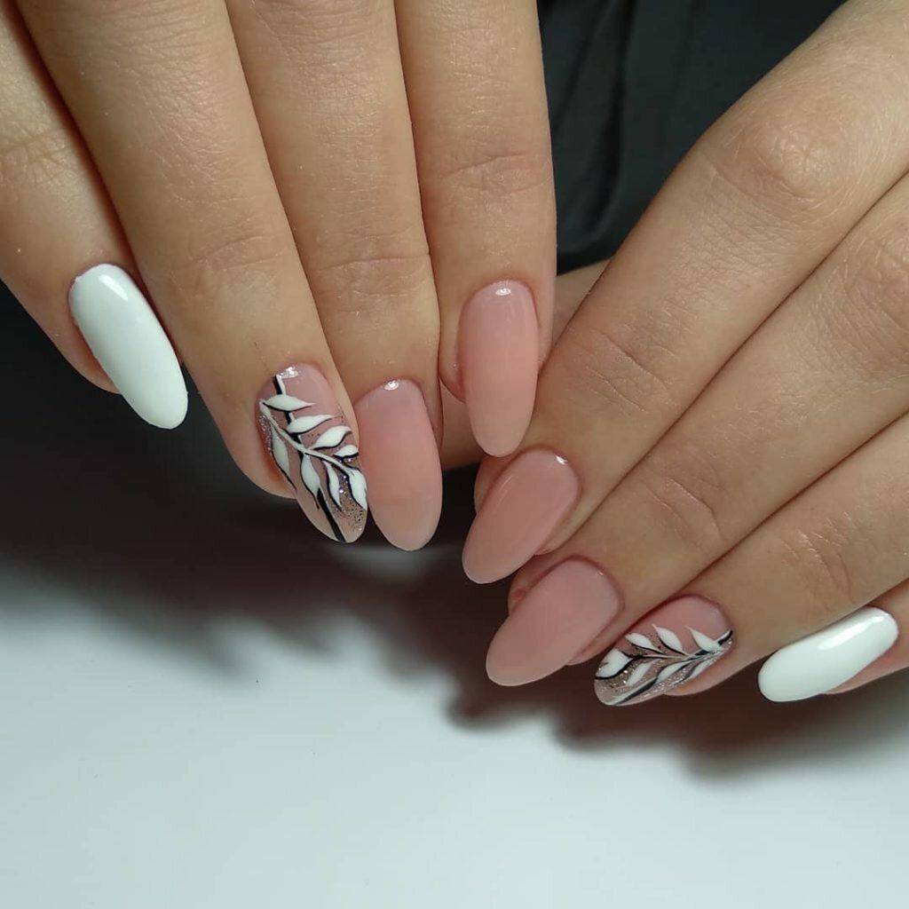 Отличный вариант рисунка и маникюра – нежный розовый с белым.
