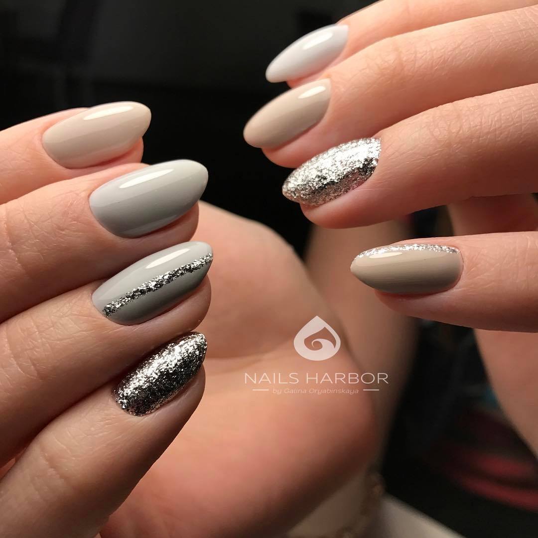 Что касается нежного маникюра на миндальных ногтях, то можно использовать цвета поярче. Например, красиво выглядят нейл-арты в сером, бежевом, бирюзовом, голубом, ярком розовом цветах. Если вы все же хотите получить нежный дизайн ногтей, то выбирайте молочный цвет, полупрозрачные и прозрачные текстуры.