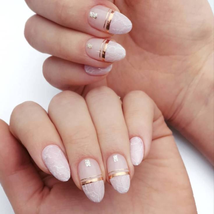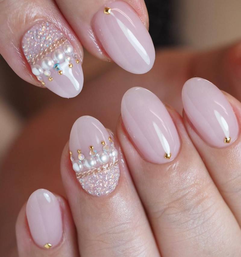 Этот маникюр подойдет, пожалуй, любой невесте. Особенно выигрышно он будет смотреться, если у вас платье цвета слоновая кость или с тем же жемчужным отливом.
