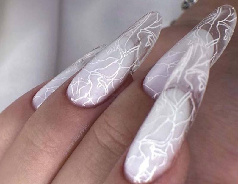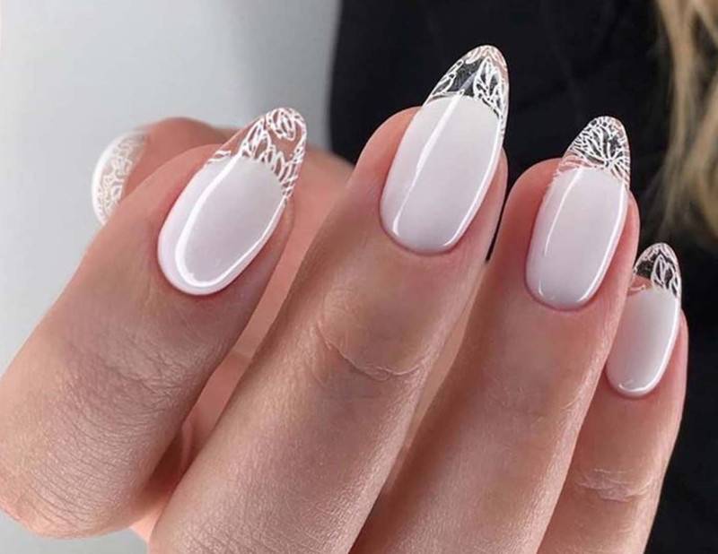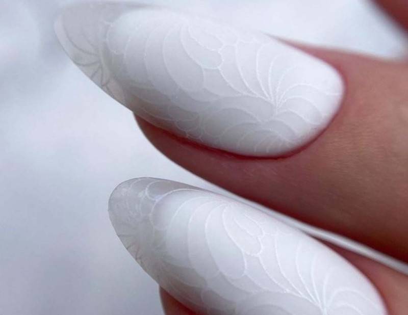 именно аристократическая сдержанность, романтичные узоры и симметричная геометрия способны гармонично украсить длинные ногти невесты и стать актуальным трендом сезона.