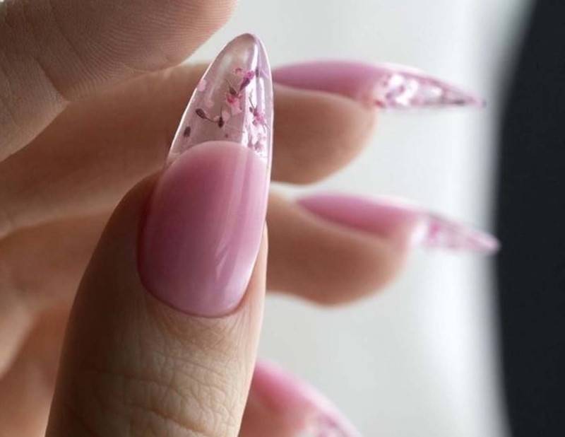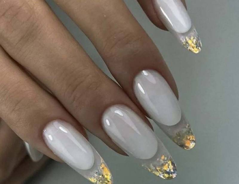 Овальные пластины в виде миндаля хороши с нюдовым матовым и глянцевым лаком, френчем, блесками, 3D-узорами. Это хорошая база для лунного дизайна с помощью страз, жемчуга, сердечек, блесток.