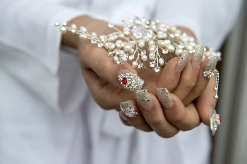 - наращивать ногти следует заранее, чтобы девушка могла привыкнуть к дополнительному объему и чувствовать себя на свадьбе комфортно;
