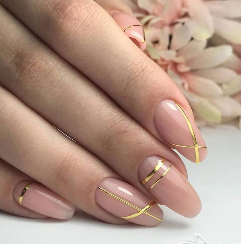 - использование декора, подчеркивающего дизайн свадебного кольца. Например, можно нанести на ногти тонкий узор из сияющих золотых линий;